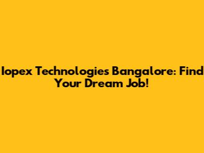 Iopex Technologies Bangalore: Find Your Dream Job!
