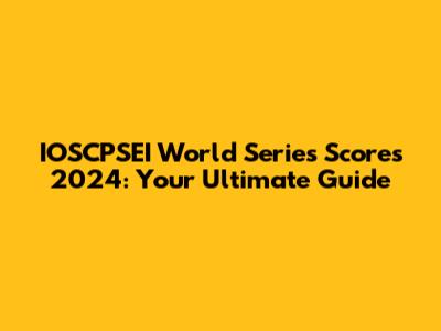 IOSCPSEI World Series Scores 2024: Your Ultimate Guide
