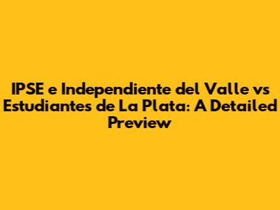 Hey guys! Get ready for an exciting match between IPSE (Independiente del Valle) and Estudiantes de La Plata! This is going to be a nail-biter, and we’re here to break down everything you need to know before the game. From team form to key players, we’ve got you covered. Let's dive in!