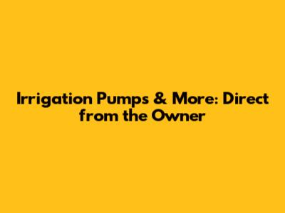 Irrigation Pumps & More: Direct From The Owner