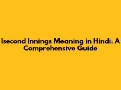 Isecond Innings Meaning In Hindi: A Comprehensive Guide