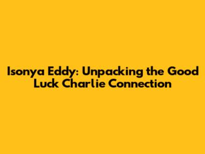 Hey there, fellow TV buffs! Have you ever stumbled upon a name that just sounds familiar, especially if you're a fan of Disney Channel's beloved sitcom, Good Luck Charlie? That name is Isonya Eddy. You might be wondering, "Who is Isonya Eddy, and what's the deal with Good Luck Charlie?" Well, buckle up, because we're about to dive deep into this fascinating connection. We'll explore the significance of Isonya Eddy and her relationship with the iconic series. Prepare to uncover some behind-the-scenes insights, understand the impact she had, and discover why her name might ring a bell, even if you can't quite place it. So, grab your remote, get comfy, and let's unravel the mystery together.