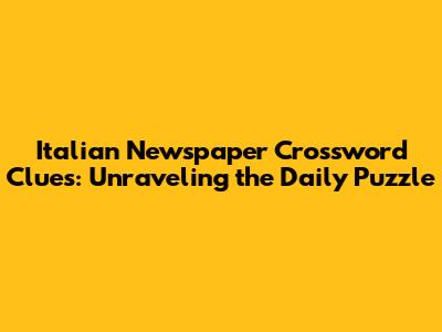 Hey crossword puzzle enthusiasts, ever found yourself staring at an Italian daily newspaper crossword clue and scratching your head? You're not alone! These puzzles are a fantastic way to keep your brain sharp and connect with Italian culture, but sometimes those clues can be a real head-scratcher. Whether you're a seasoned solver or just dipping your toes into the world of crosswords, understanding how these clues work is key. Italian daily newspaper crossword clues often rely on a blend of wordplay, cultural references, and a bit of linguistic finesse. They’re not just about finding a synonym; they’re about deciphering a riddle wrapped in an enigma, often with a distinctly Italian flair. Think about it, guys, each clue is a mini-challenge, a little puzzle piece that, when correctly interpreted, unlocks a part of the larger grid. The beauty of these crosswords lies in their ability to test your knowledge of Italy – its history, geography, famous personalities, and even its delicious cuisine! So, grab your pen, settle in, and let's dive deep into the fascinating world of Italian daily newspaper crossword clues. We'll explore common themes, decipher tricky wordplay, and arm you with the strategies you need to conquer those cryptic lines. Get ready to boost your vocabulary, expand your cultural knowledge, and, most importantly, have a blast solving!