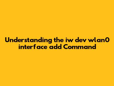 Iw Dev Wlan0 Interface Add: Command Explained