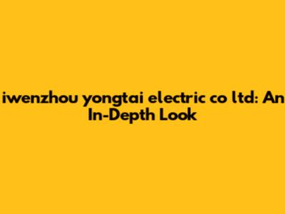 Iwenzhou Yongtai Electric Co Ltd: An In-Depth Look