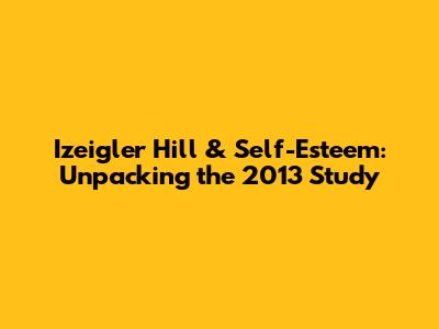 Izeigler Hill & Self-Esteem: A Deep Dive Into The 2013 Study