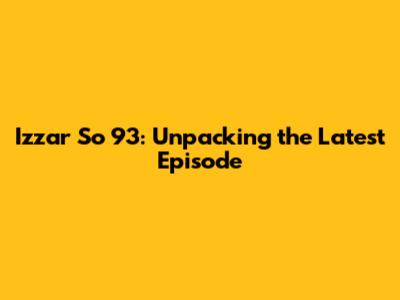 Izzar So 93: Unpacking The Latest Episode