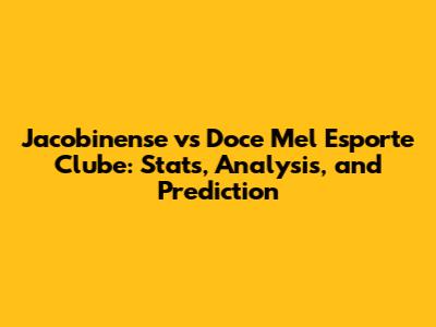 Jacobinense Vs Doce Mel: Stats, Analysis, And Prediction