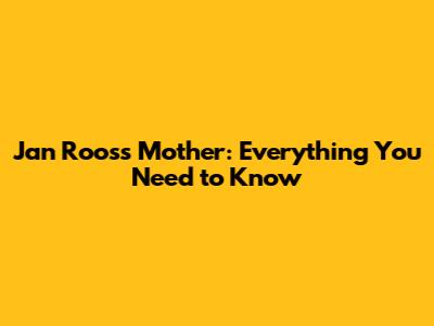 Jan Roos's Mother: Everything You Need To Know