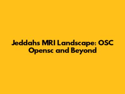 Jeddah's MRI Landscape: OSC Opensc And Beyond
