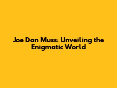 Joe Dan Muss: Unveiling The Enigmatic World