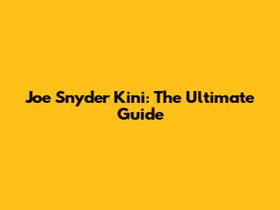 Joe Snyder Kini: The Ultimate Guide