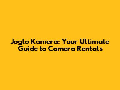 Joglo Kamera: Your Ultimate Guide To Camera Rentals