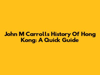 John M Carroll's History Of Hong Kong: A Quick Guide