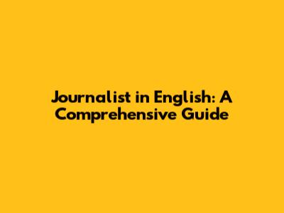 Journalist In English: A Comprehensive Guide