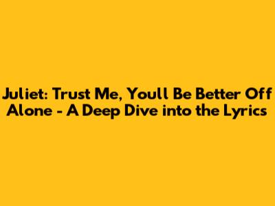 Okay, let's get into the heart of the matter – the lyrics! "Trust Me, You'll Be Better Off Alone" isn't just a catchy title; it's the core message. The song probably tells a story of someone realizing they deserve more than what they're getting in a relationship. It's like they're saying, "Hey, I know it hurts now, but trust me on this one. You're going to thank me later." Juliet’s lyrics are a testament to her ability to articulate complex emotions in a way that is both poignant and accessible. She doesn’t shy away from the vulnerability of the situation, yet she also infuses the song with a sense of determination and self-assuredness. The lyrics explore the push and pull of wanting to hold on to a relationship while simultaneously recognizing that it’s no longer healthy or sustainable. This internal conflict is something many people can relate to, making the song all the more impactful. The song’s narrative unfolds like a conversation, with Juliet offering words of comfort and encouragement to someone going through a difficult time. It’s as if she’s been there herself and is now sharing her wisdom and experience. The lyrics are filled with empathy and understanding, creating a safe space for listeners to process their own emotions. The use of vivid imagery and metaphors further enhances the emotional impact of the song. Juliet paints a picture of a relationship that is draining and unfulfilling, contrasting it with the potential for happiness and fulfillment that awaits when one chooses to be alone. This contrast serves to reinforce the message that sometimes, the best thing we can do for ourselves is to walk away. The lyrics also touch on the importance of self-respect and recognizing one's worth. Juliet reminds us that we deserve to be with someone who values us and treats us with kindness and consideration. Settling for less can lead to resentment and unhappiness, and it’s important to prioritize our own well-being above all else.