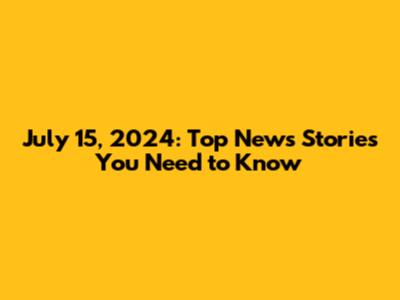 July 15, 2024: Top News Stories You Need To Know