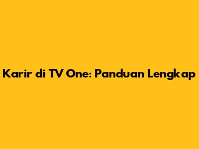 Karir Di TV One: Panduan Lengkap