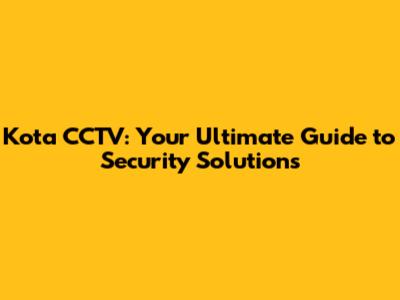Kota CCTV: Your Ultimate Guide To Security Solutions