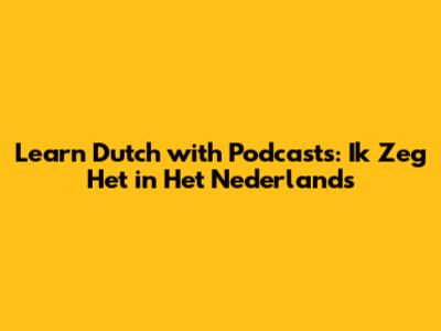 Learn Dutch With Podcasts: Ik Zeg Het In Het Nederlands