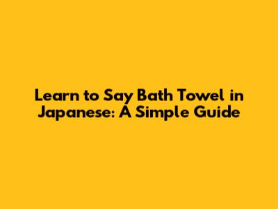 Learn To Say 'Bath Towel' In Japanese: A Simple Guide