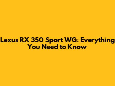 Unveiling the Lexus RX 350 Sport WG: What Makes It Special?