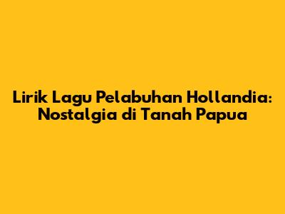 Papua, oh Papua! Siapa sih yang nggak kenal dengan keindahan alamnya yang memukau dan budayanya yang kaya? Nah, salah satu cara untuk merasakan kedalaman Papua adalah melalui musik. Ada satu lagu yang sering banget bikin hati berdesir, yaitu "Pelabuhan Hollandia." Lagu ini bukan cuma sekadar alunan nada, tapi juga jendela ke masa lalu, ke sebuah tempat yang penuh cerita. Yuk, kita bedah liriknya dan rasakan nostalgia yang terpancar!