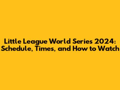 LLWS 2024: Schedule, Times, And How To Watch