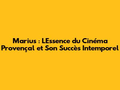 L'Héritage de Marius : Un Film Qui Continue d'Influencer le Cinéma
