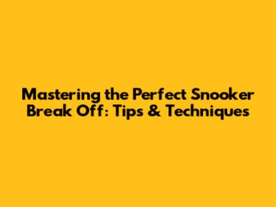 Mastering The Perfect Snooker Break Off: Tips & Techniques