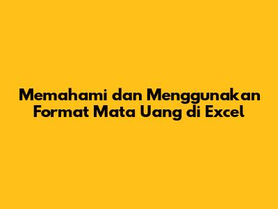 Memahami Dan Menggunakan Format Mata Uang Di Excel