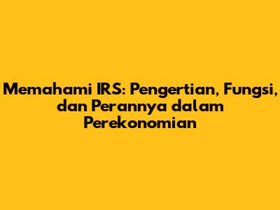 Memahami IRS: Pengertian, Fungsi, Dan Perannya Dalam Perekonomian
