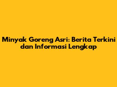 Minyak Goreng Asri: Berita Terkini Dan Informasi Lengkap