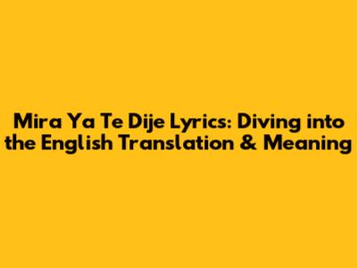 Hey everyone! Ever found yourself vibing to a song and thinking, "Man, I wish I knew what they were saying?" Well, today, we're diving deep into the lyrics of "Mira Ya Te Dije." We're going to break down the English translation, uncover the meaning behind the words, and give you a fantastic understanding of this awesome tune. So, grab your headphones, get comfy, and let's get started. "Mira Ya Te Dije" is more than just a song; it's a story told through music. Understanding the lyrics unlocks a whole new level of appreciation, right? The goal here is simple: to make sure you fully grasp the essence of the song. We're going to use simple, easy-to-understand language so you can all join in the fun. So, whether you're a seasoned music aficionado or just someone who loves a good beat, let's explore the lyrics and meaning of "Mira Ya Te Dije" together. We will start with a general overview, and then go deeper into the specific sections and lines of the song. Get ready for an adventure into music and language, and by the end, you'll feel like you know the song inside and out. Ready? Let's go!