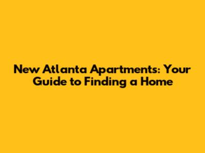 New Atlanta Apartments: Your Guide To Finding A Home