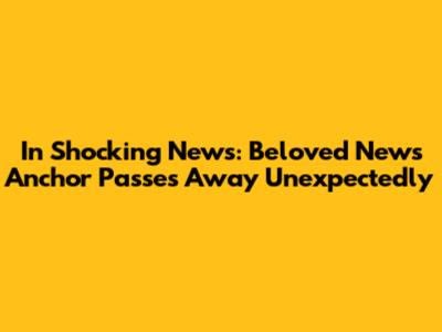 In Shocking News: Beloved News Anchor Passes Away Unexpectedly