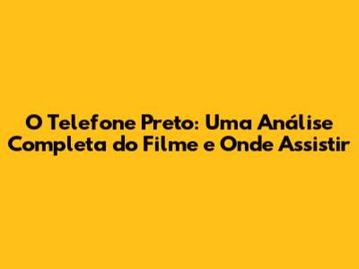 Onde Assistir "O Telefone Preto Filme Completo Online": Guia Prático