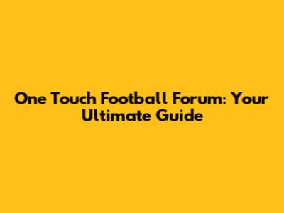 One Touch Football Forum: Your Ultimate Guide