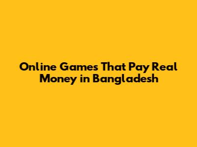Online Games That Pay Real Money In Bangladesh