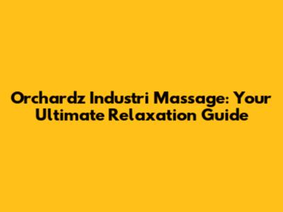 Orchardz Industri Massage: Your Ultimate Relaxation Guide