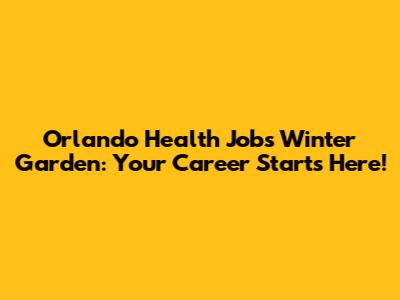 Orlando Health Jobs In Winter Garden: Your Career Starts Here!