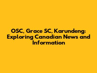 OSC, Grace SC, And Karundeng: Canadian News & Updates