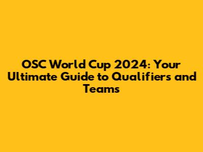 OSC World Cup 2024: Qualifiers, Teams, And What You Need To Know