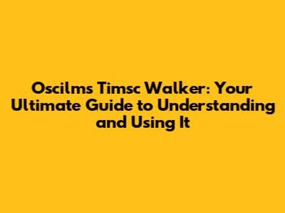 Oscillums Timsc Walker: A Comprehensive Guide