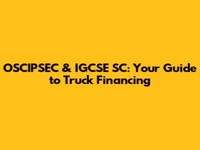 OSCIPSEC & IGCSE SC: Your Guide To Truck Financing