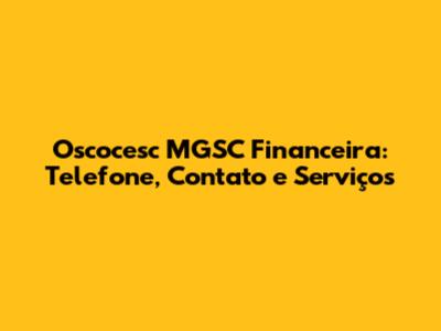 Oscocesc MGSC Financeira: Telefone, Contato E Serviços