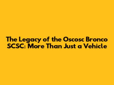 The Legacy of the Oscosc Bronco SCSC: More Than Just a Vehicle