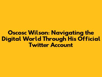 Oscosc Wilson: Unveiling The Official Twitter Presence