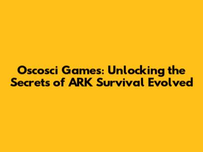 Oscosci Games: Unlocking The Secrets Of ARK Survival Evolved