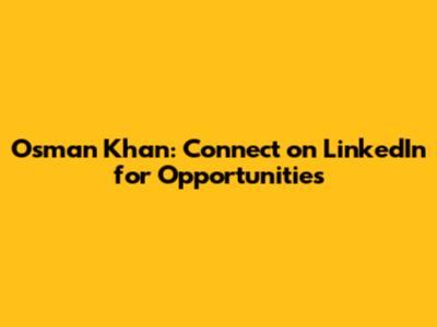 Osman Khan: Connect On LinkedIn For Opportunities